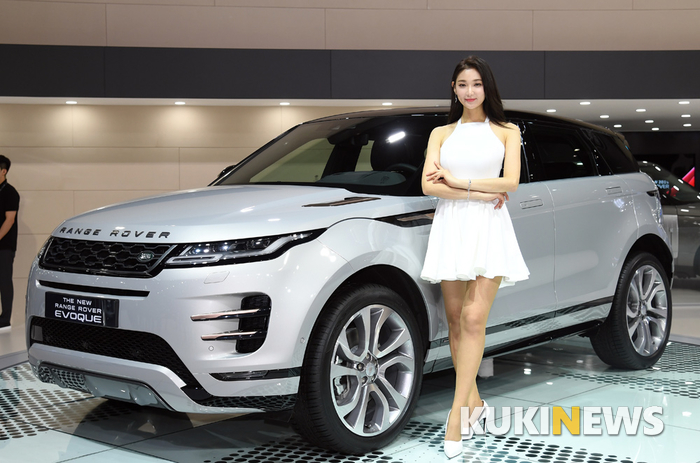 28일 오전 경기도 고양시 킨텍스에서 '2019 서울모터쇼' 프레스데이가 열렸다. 이날 재규어랜드로버코리아 부스에서 한 모델이 레이지로버 뉴 이보크와 포즈를 취하고 있다.
