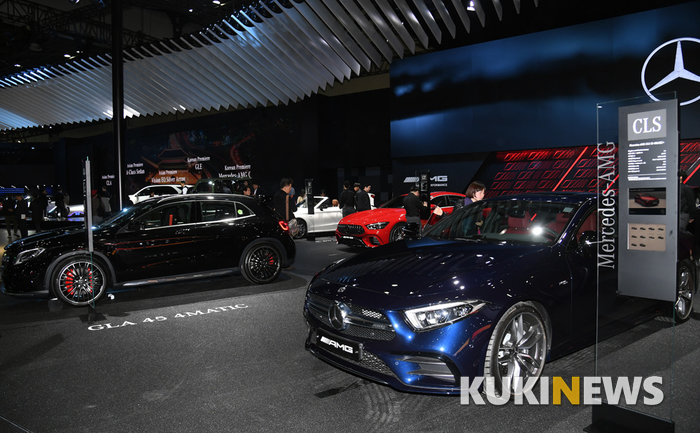 28일 오전 경기도 고양시 킨텍스에서 열린 '2019 서울모터쇼' 메르세데스 벤츠 부스에 다양한 AMG 모델이 전시됐다.