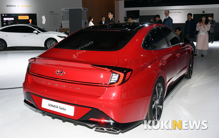 28일 오전 경기도 고양시 킨텍스에서 '2019 서울모터쇼' 프레스데이가 열렸다. 이날 현대차 부스에 신형 소나타 터보 모델이 전시됐다.