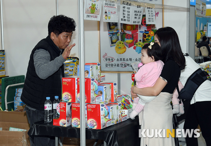 29일 오전 서울 양재동 aT센터에서 열린 '제25회 서울 베이비 키즈 페어'(이하 서베키)에서 관람객들이 전시장을 돌아보고 있다.