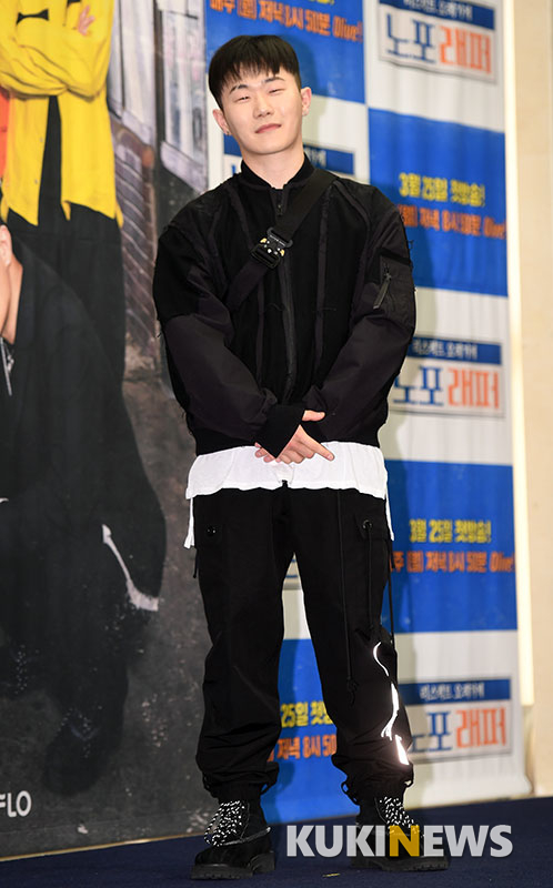 래퍼 행주가 1일 오전 서울 마포구 상암동 스탠포드호텔에서 열린 올리브 '노포래퍼'(석정호 연출) 제작발표회에 참석해 포토타임을 갖고 있다.