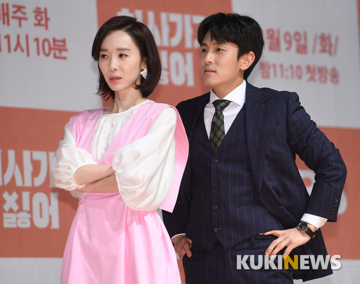 배우 한수연과 김동완이 8일 오전 서울 여의공원로 KBS 아트홀에서 열린 KBS2 새 드라마 ‘회사 가기 싫어’ 제작발표회에서 포즈를 취하고 있다.
