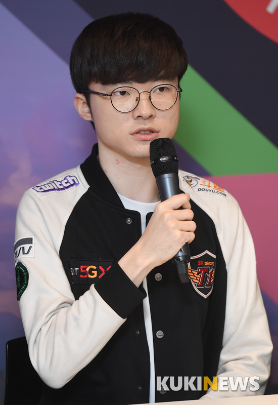 '페이커' 이상혁이 9일 오후 서울 종로구 그랑서울 롤파크에서 열린 '2019 리그 오브 레전드 챔피언스 코리아 스프링 파이널 미디어데이'에서 취재진의 질문에 답하고 있다.
