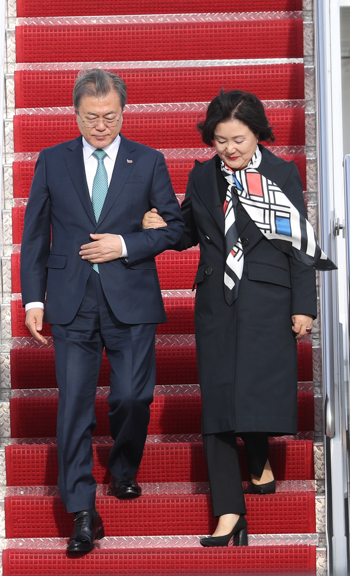 문재인 대통령과 김정숙 여사가 10일(현지시간) 미국 워싱턴 앤드류스 공군기지에 도착했다.