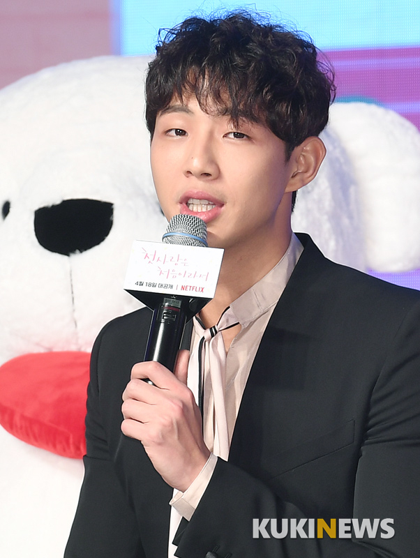배우 지수가 12일 오전 서울 여의도 콘래드 서울에서 열린 넷플릭스 '첫사랑은 처음이라서' 제작발표회에 참석해 인사하고 있다.