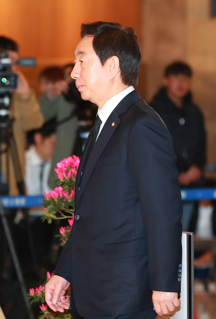 김성태 자유한국당 의원이 12일 서울 서대문구 신촌세브란스병원 장례식장에 마련된 故 조양호 한진그룹 회장의 빈소로 들어서고 있다.