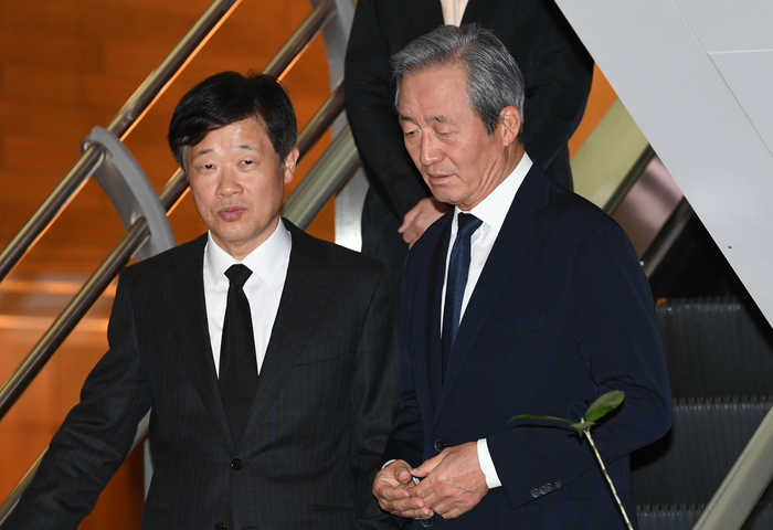 정몽준 아산재단 이사장이 12일 서울 서대문구 신촌세브란스병원 장례식장에 마련된 故 조양호 한진그룹 회장의 빈소로 들어서고 있다.
