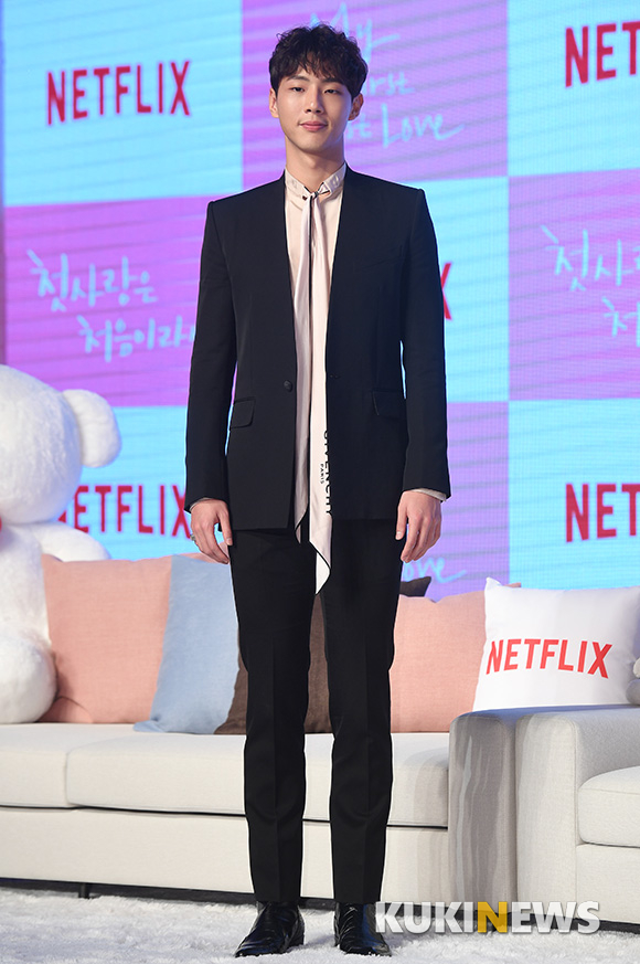 배우 지수가 12일 오전 서울 여의도 콘래드 서울에서 열린 넷플릭스 '첫사랑은 처음이라서' 제작발표회에 참석해 포즈를 취하고 있다.