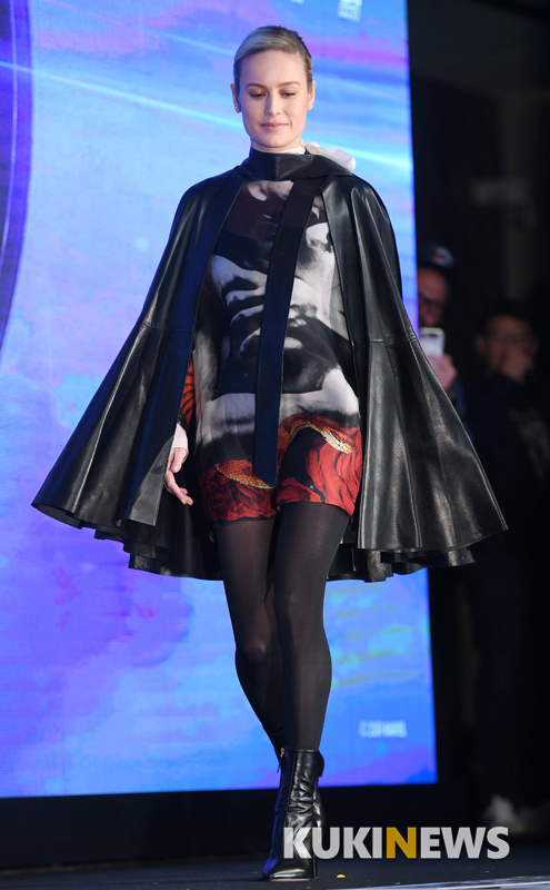 배우 브리 라슨이 15일 오전 서울 광화문 포시즌스호텔에서 열린 영화 '어벤져스: 엔드게임' 아시아 프레스 컨퍼런스에서 포즈를 취하고 있다.