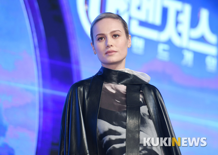 배우 브리 라슨이 15일 오전 서울 광화문 포시즌스호텔에서 열린 영화 '어벤져스: 엔드게임' 아시아 프레스 컨퍼런스에서 포즈를 취하고 있다.