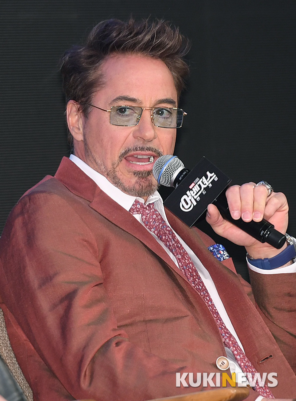 배우 로버트 다우니 주니어가 15일 오전 서울 광화문 포시즌스호텔에서 열린 영화 '어벤져스: 엔드게임' 아시아 프레스 컨퍼런스에서 취재진의 질문에 답하고 있다.