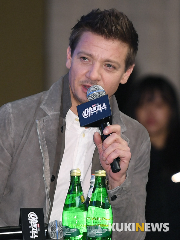 배우 제레미 레너가 15일 오전 서울 광화문 포시즌스호텔에서 열린 영화 '어벤져스: 엔드게임' 아시아 프레스 컨퍼런스에서 취재진의 질문에 답하고 있다.