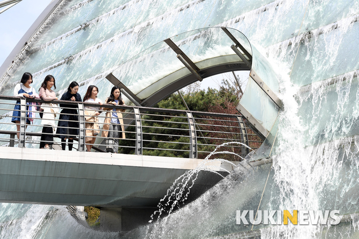 아쿠아아트 육교의 워터스크린은 올해 10월말까지 하루 2시간씩 3회 가동되며 폭염주의보 및 미세먼지 농도가 나쁠 경우 상시 가동된다.