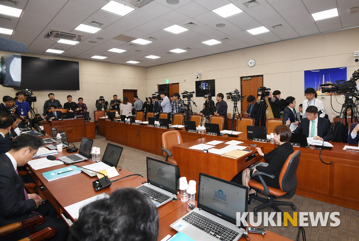 청문회 시작 시각이 10시로 예정돼 있었지만, 자유한국당 의원들의 자리가 비어있다.