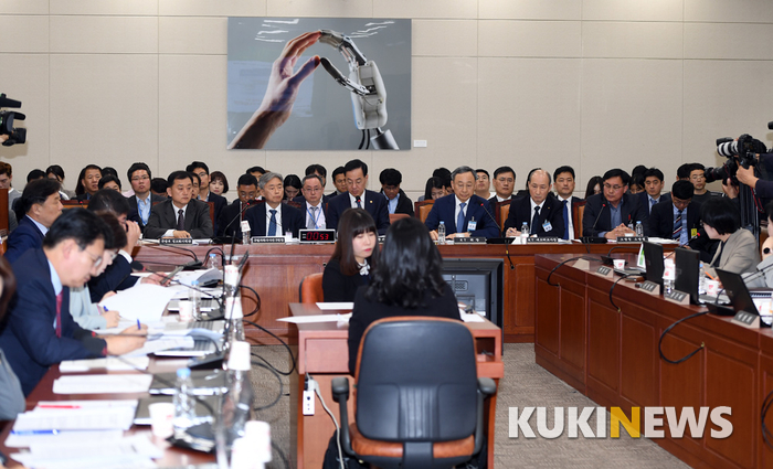 황창규 KT 회장이 17일 오전 서울 여의도 국회에서 열린 'KT 아현지사 화재사건 관련 청문회'에서 위원들의 질문에 답하고 있다.