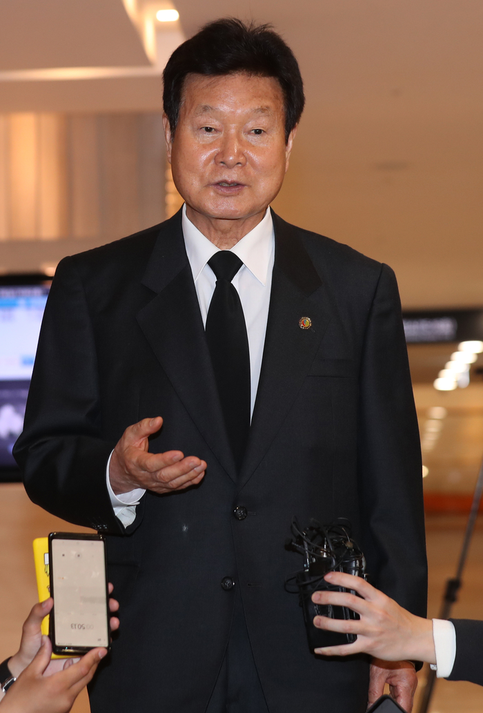 한화갑 전 의원이 21일 서울 서대문구 신촌 세브란스병원 장례식장에 마련된 김홍일 전 의원의 빈소로 들어가고 있다.