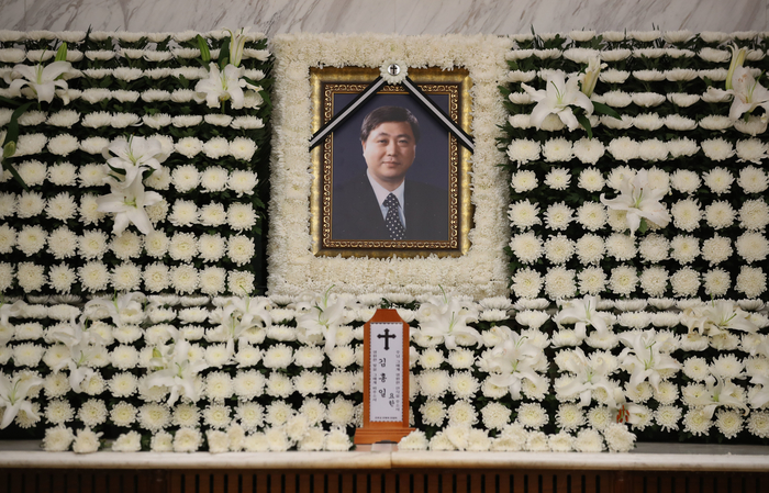 21일 오전 서울 서대문구 신촌세브란스병원 장례식장에 故 김홍일 전 민주당 의원의 빈소가 마련됐다.