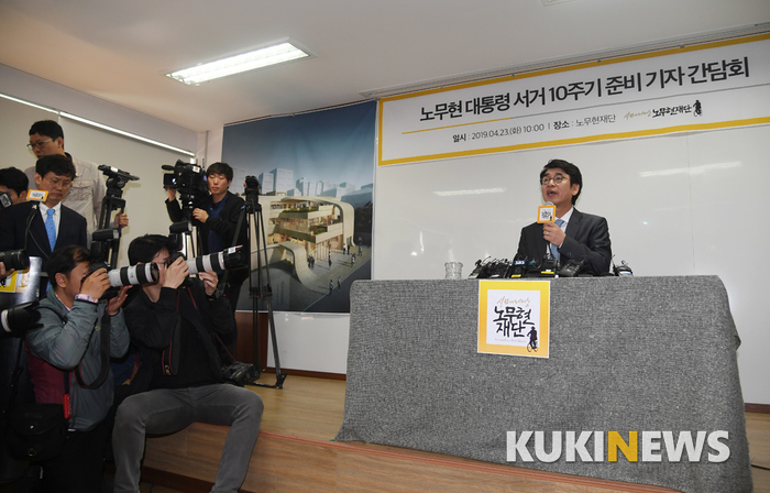 사람사는세상 노무현재단 유시민 이사장이 23일 서울 마포구 노무현재단에서 열린 노무현 대통령 서거 10주기 준비 기자간담회에서 발언하고 있다.