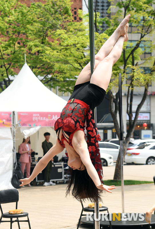 24일 오후 서울광장에서 열린 '문화가 흐르는 서울광장' 사전공연 행사에서 조성아폴아트팀이 멋진 무대를 선보이고 있다.