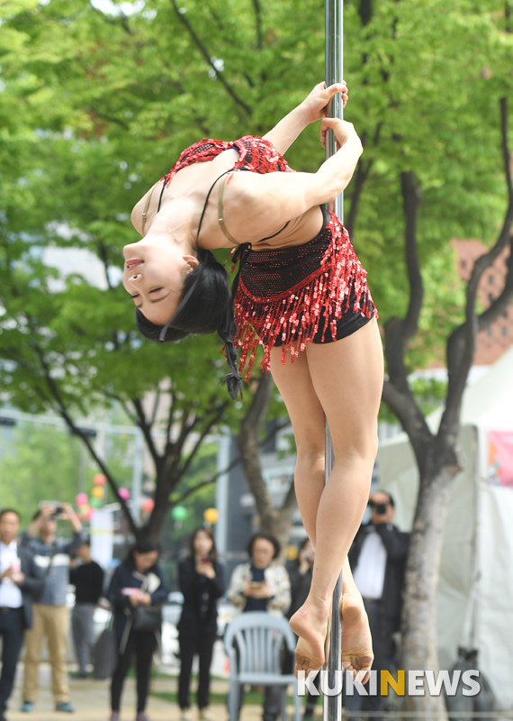 24일 오후 서울광장에서 열린 '문화가 흐르는 서울광장' 사전공연 행사에서 조성아폴아트팀이 멋진 무대를 선보이고 있다.
