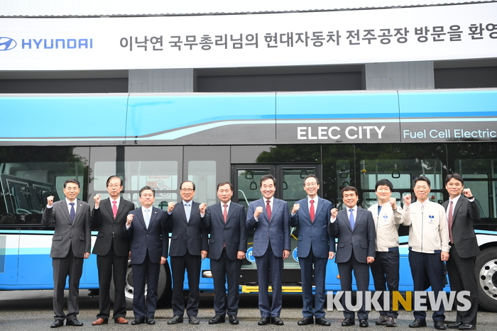 이 총리는 이어 참석자들과 함께 수소버스를 타고 현대차 공장 수소 연관 생산시설을 시찰하며 근로자를 격려, 정부 차원의 수소경제 활성화 의지를 보였다.