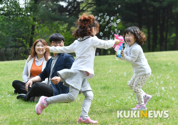 '가정의 달'의 시작을 알리는 1일 서울 능동 어린이대공원을 찾은 한 가족이 즐거운 시간을 보내고 있다.