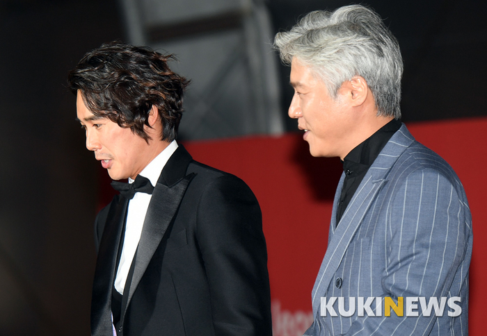 배우 정태우와 박호산이 2일 오후 전북 전주돔에서 열린 '제20회 전주국제영화제' 개막행사에서 레드카펫을 걷고 있다.