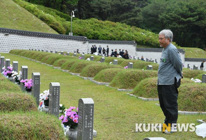 제39주년 5.18민주화운동 기념식이 열린 18일 오전 광주 북구 국립 5.18 민주묘지에서 유족들이 묵념하고 있다.