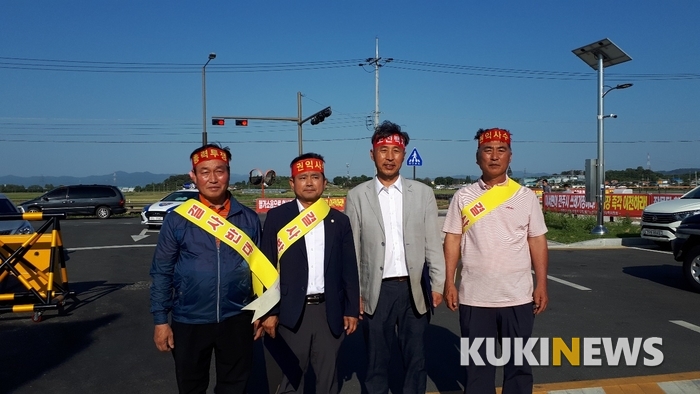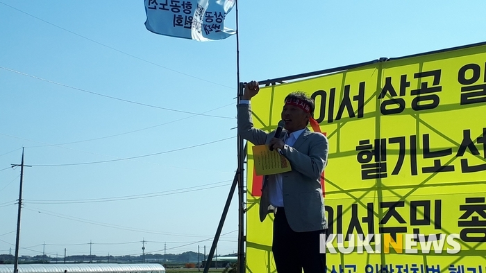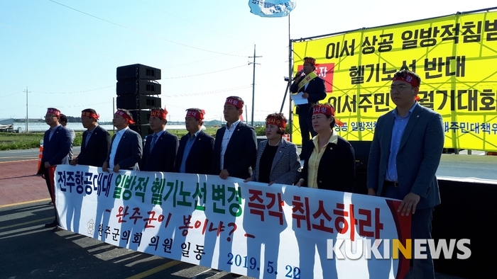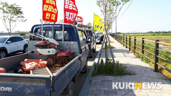 전북 완주 이서면민으로 구성된 '완주군 상공 일방적 침범 반대 주민대책위원회(공동대표 윤수봉·이세우)는 22일 오후 4시 전주 항공대대 인근에서 총궐기대회를 갖고 항공노선 변경을 요구했다.