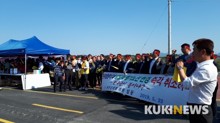 궐기대회 막바지 공동대표와 주민대표는 항공대대를 방문, 노선 변경을 요구하는 주민 결의문을 전달했다.