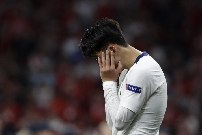 손흥민이 1일(현지시간) 스페인 마드리드 에스타디오 메트로폴리타노에서 열린 2018-19 유럽축구연맹 챔피언스리그 결승 리버풀과의 경기에서 0-2로 패배 후 아쉬워하고 있다.