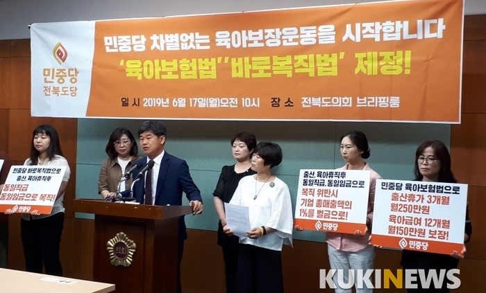 민중당 전북도당은 17일 차별없는 육아보장보험법 제정을 주장했다.