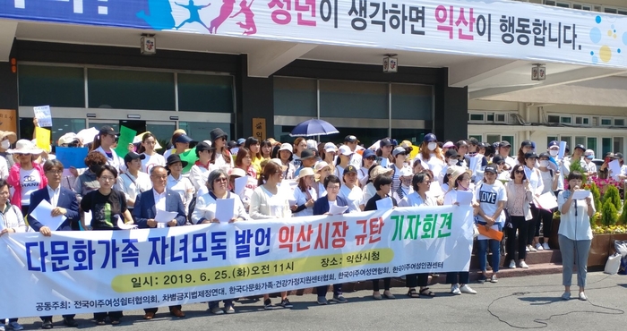 특히 이들은 “익산은 전북에서 두 번째로 많은 결혼이민자가 생활하는 곳이다"면서 “입에 담기도 부끄러운 혐오 발언이 문제임을 인정한다면 정 시장은 사과의 의미로 자진 사퇴하길 바란다”고 밝혔다.
