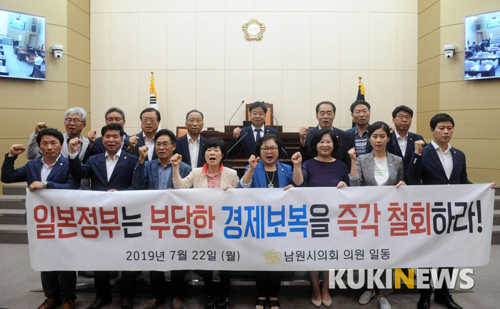 전북 남원시의회(의장 윤지홍)는 22일 일본정부의 국제규정을 무시한 대한국 경제보복 행태를 규탄하고 철회를 강력 촉구했다.
