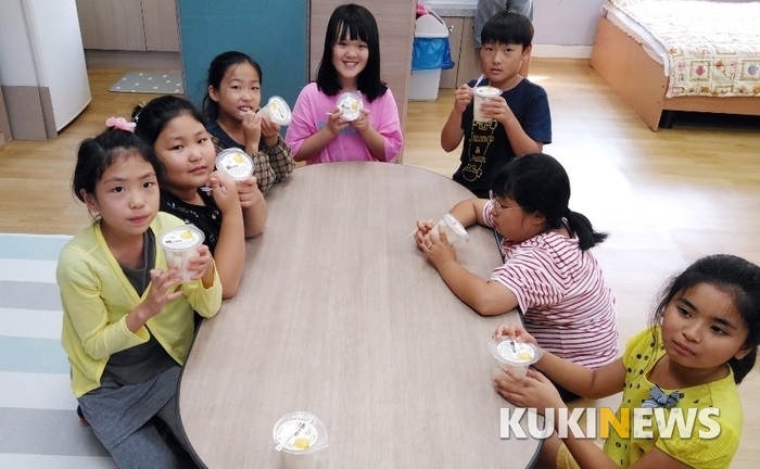 간식은 친환경인증과 GAP 인증을 받은 과일로 컵 과일 형태로 제공된다. 주 1~2회, 연간 30회 이상 공급한다.