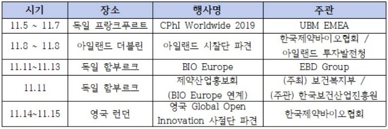 또 협회는 11월 8일부터 양일간 아일랜드 더블린을 찾는다. 아일랜드 투자발전청(IDA Ireland)과 함께 아일랜드의 바이오의약품, 원료의약품, specialty 의약품(고가의 항암제 등 특수의약품) 생산과 연구개발, CDMO(위탁 개발·생산) 등에 관한 글로벌 진출 거점 마련과 투자 가능성을 검토한다는 계획이다. 사전 준비 차원에서 아일랜드 투자발전청의 아태지역 부청장이 오는 10월 1일 방한, 기업 CEO를 대상으로 조찬 투자설명회를 갖는다.