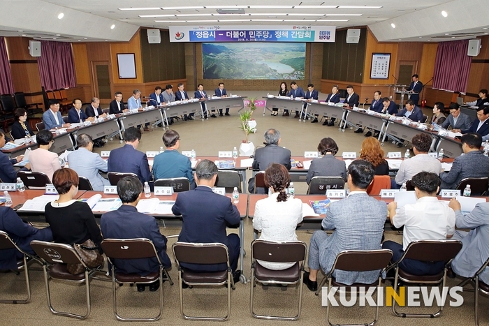 간담회에는 유진섭 시장을 비롯한 시 간부급 공무원들과 최낙삼 정읍시의회 의장, 지역구 도·시의원, 윤준병 더불어민주당 정읍고창지역위원회 위원장을 비롯한 당 관계자 50여 명이 참석했다.