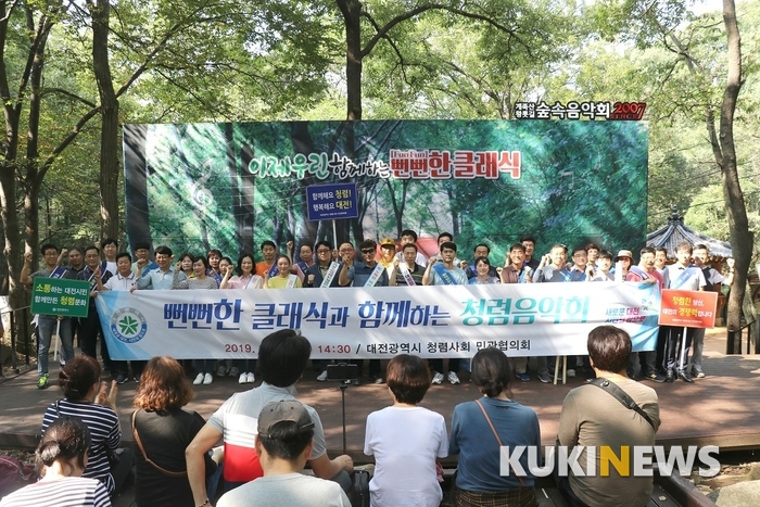 한편, 이날 음악회 사전행사로 계족산 황톳길 입구에서 ‘대전광역시 청렴사회 민관협의회’관계자 100여 명이 계족산을 찾는 등산객을 대상으로 청렴문화 확산을 위한 청렴캠페인을 벌였다.
