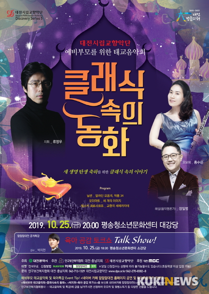 대전시립교향악단은 오는 25일 오후 8시 평송청소년문화센터 대강당에서 ‘디스커버리 시리즈 5’ 예비부모를 위한 태교음악회 ‘클래식 속의 동화’ 연주회를 연다.