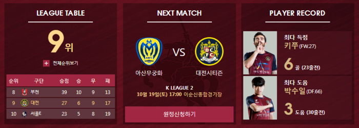 한편 허태정 시장은 최근 대전시의회와 대전시티즌 서포터즈(퍼플크루, 대저니스타), 축구전문가 등과 비공개 간담회를 갖고 투자유치에 대한 의견 청취를 해온 것으로 알려졌다.