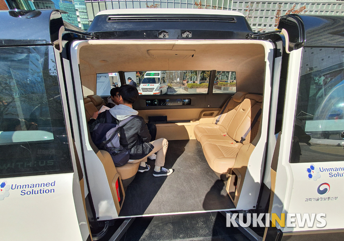 8일 서울 마포구 상암문화광장 일대에서 열린 '2019 서울 스마트모빌리티 엑스포'에서 관람객들이 무인 자동차를 체험하고 있다.