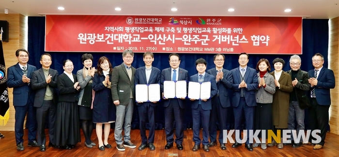 완주군(군수 박성일)-원광보건대학교(총장 백준흠)-익산시(시장 정헌율)가 평생직업교육을 통해 일자리를 창출하기로 했다.