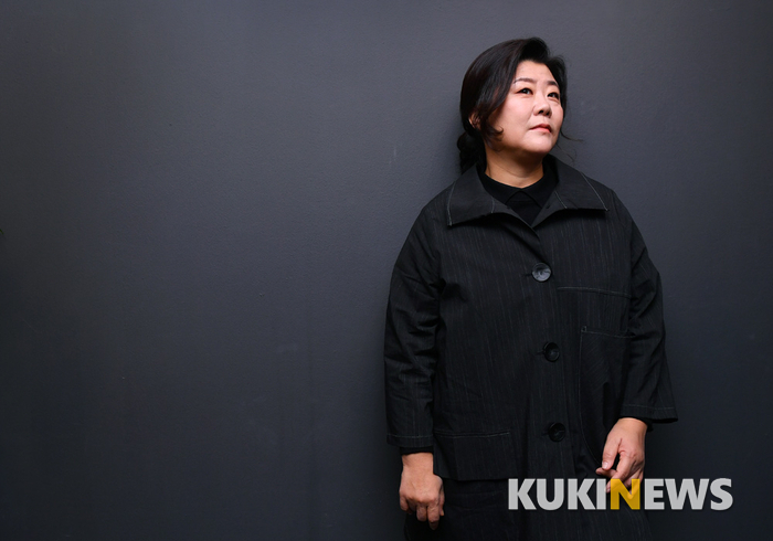 배우 이정은이 5일 서울 강남구 한 카페에서 열린 쿠키뉴스와 인터뷰에서 포즈를 취하고 있다.