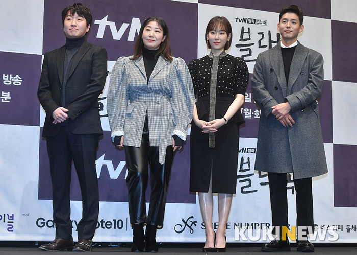 배우 이창훈과 라미란, 서현진, 하준이 11일 오후 서울 경인로 라마다 서울신도림호텔에서 열린 TVN 월화드라마 '블랙독' 제작발표회에 참석해 포즈를 취하고 있다.