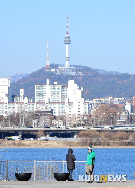 미세먼지 농도 '좋음' 단계인 12일 오후 서울 반포시민공원에서 바라본 도심에 맑은 하늘이 펼쳐지고 있다.
