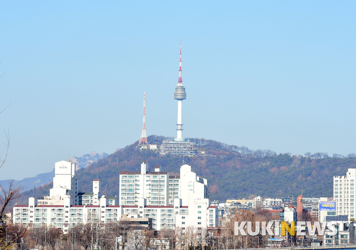 미세먼지 농도 '좋음' 단계인 12일 오후 서울 반포시민공원에서 바라본 도심에 맑은 하늘이 펼쳐지고 있다.