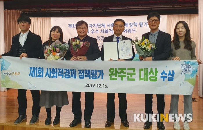 16일 완주군은 서울 YWCA에서 열린 사회적경제 정책평가 지자체 부문 1위인 대상을 수상했다. 이로써 완주군은 올 해 정부 평가에서 1위를 다섯 번 달성했다.