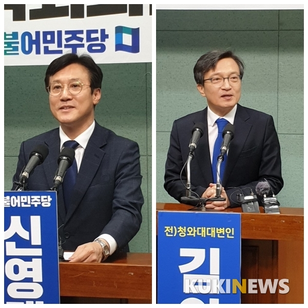김의겸 전 청와대 대변인이 19일 같은 선거구 출마선언을 들고 나온 것.