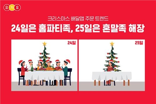 크리스마스이브와 당일 배달 앱을 이용해 음식을 주문한 소비자가 최근 많이 늘어난 것으로 조사됐다.