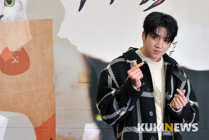 펜타곤 우석이 3일 오후 서울 월드컵북로 스탠포드호텔에서 열린 tvN 새 예능 ‘냐옹은 페이크다’ 제작발표회에서 포즈를 취하고 있다.